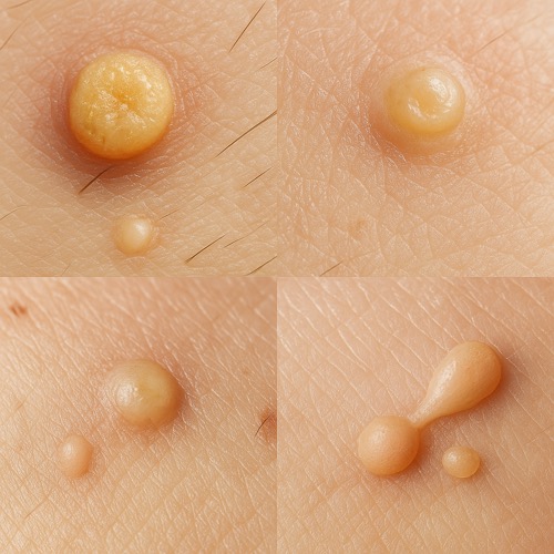 목, 겨드랑이, 가슴 밑 등 피부가 접히는 부위에 잘 생기며, 작은 혹이 피부에 매달린 듯 보입니다. 바이러스성 사마귀와 달리 전염되지 않으며, 마찰과 유전적 요인으로 생깁니다.
